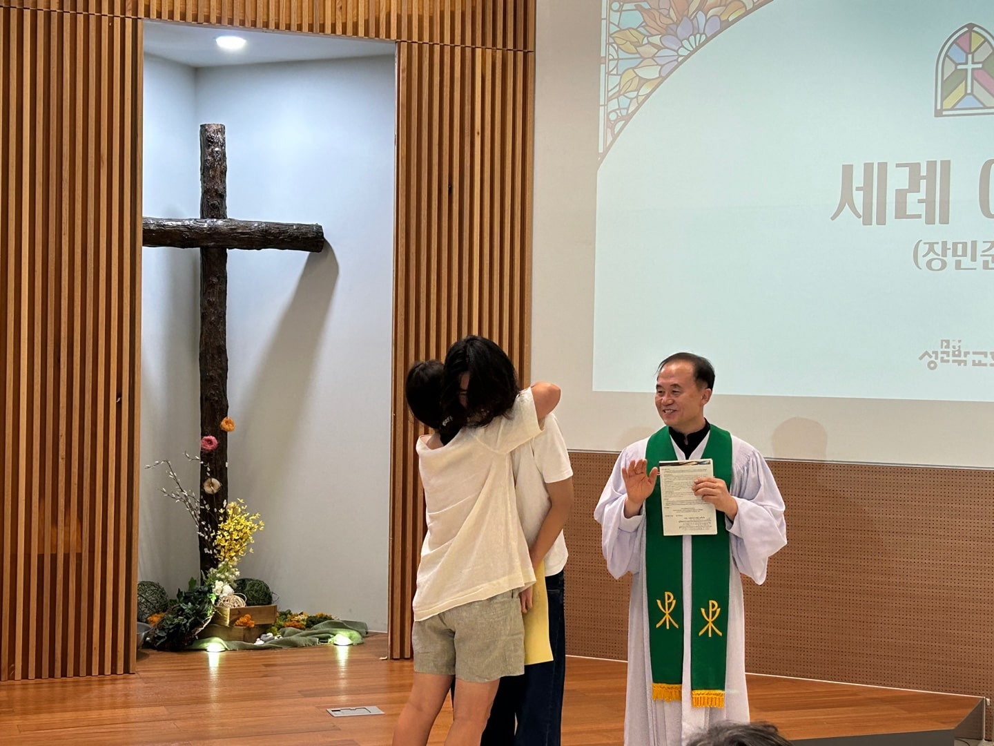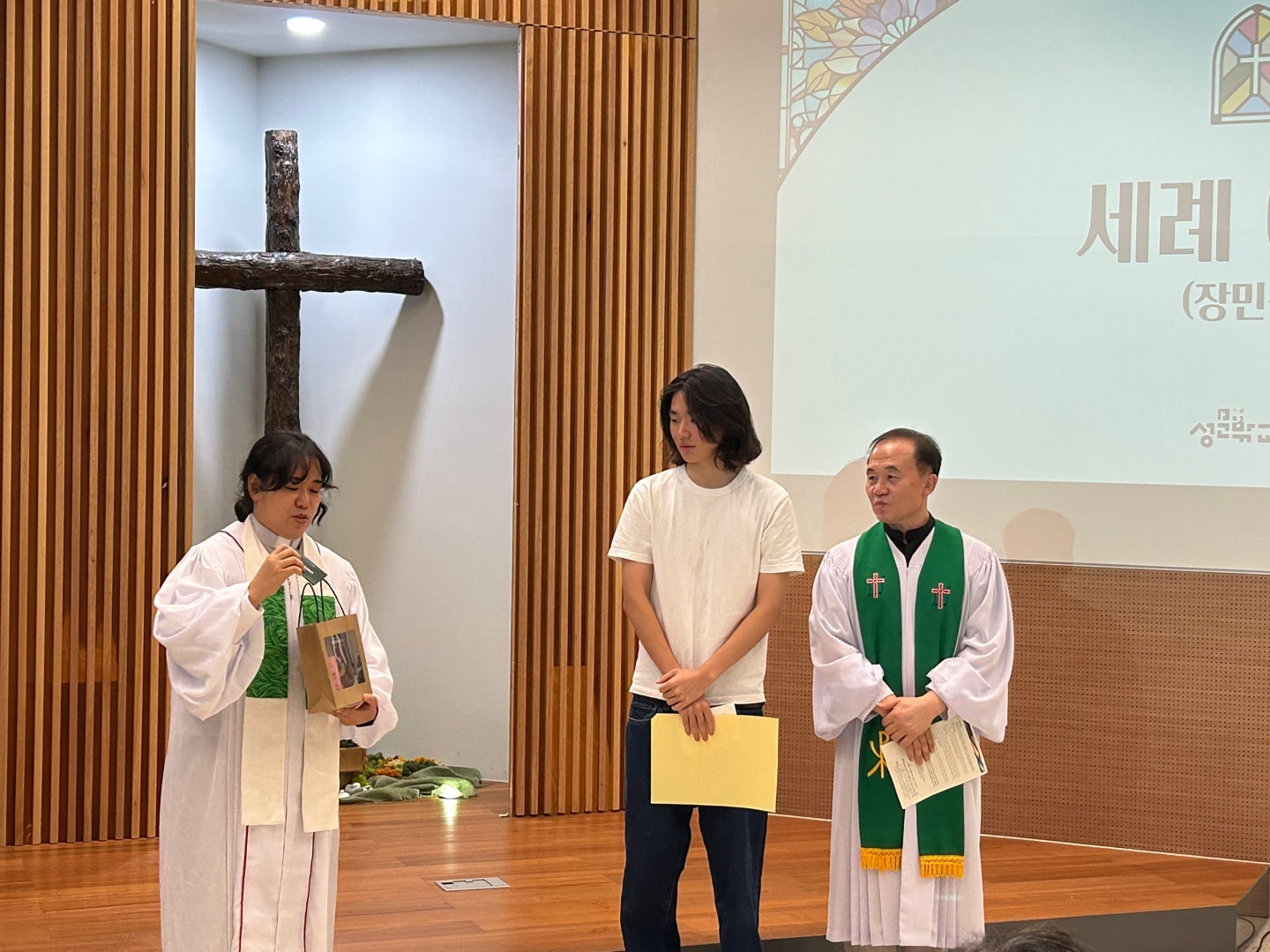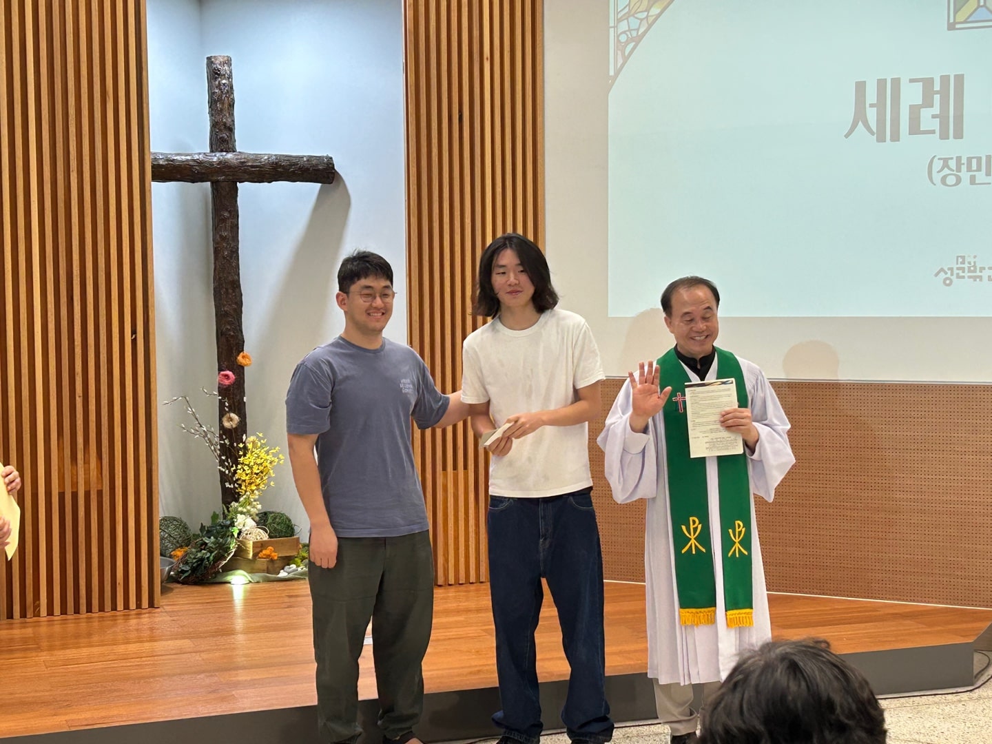 귀여운 초등학생으로 성문밖교회에 왔던 민준이가 장민준씨로 성장해서 세례까지 받았습니다. 감개무량합니다. 아버지와 아들과 성령의 이름으로 세례를 받은 장민준님을 그 어떤 피조물이라도 그리스도의 사랑에서 끊을 수 없습니다. 아멘